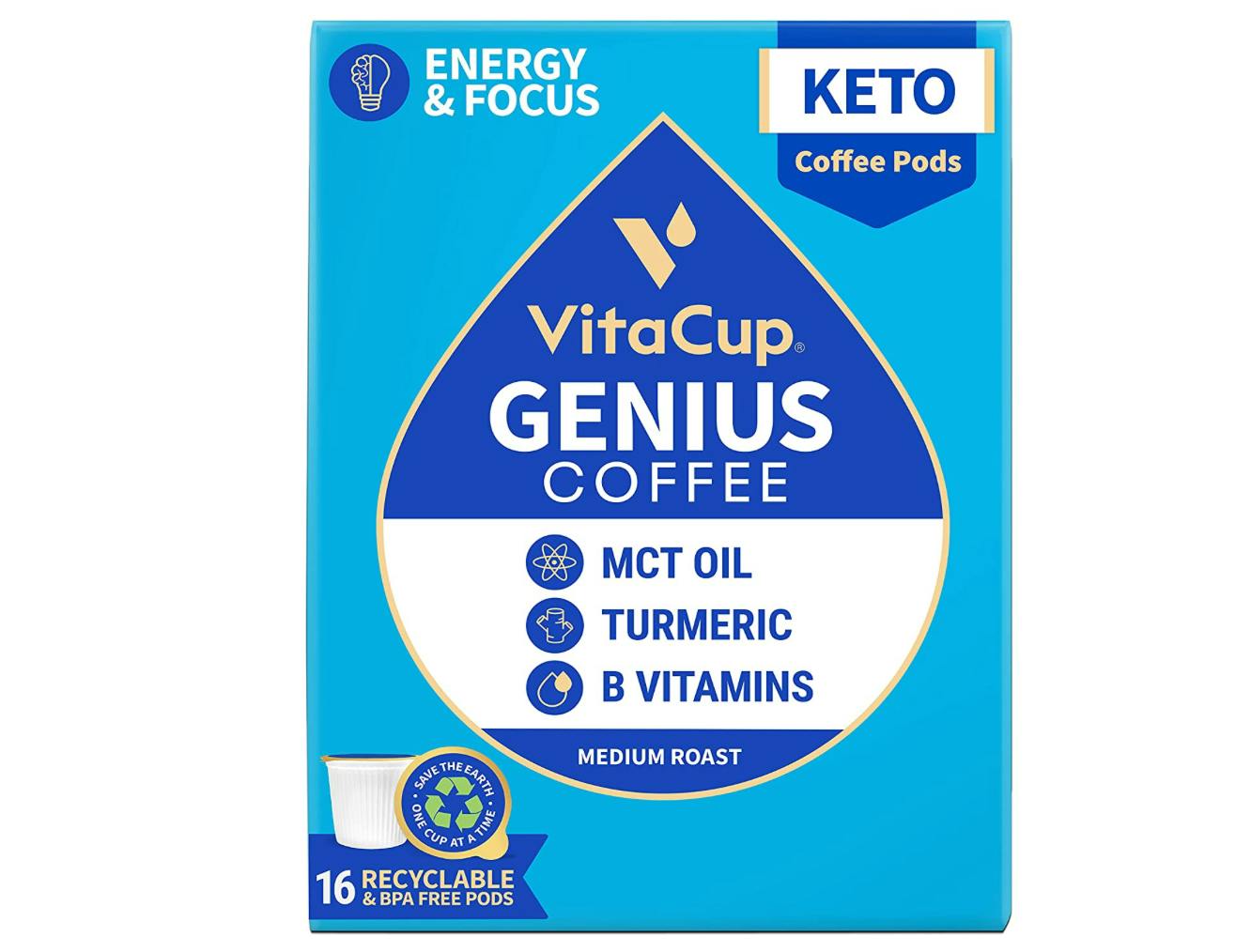 Vitacup Genius Keto Organic Coffee Pods For Energy Focus W Mct Oil Turmeric B Vitamins Recyclable Single Serve K Cup Pods Compatible W Keurig Gold Label Walmart Exclusive 12 Count